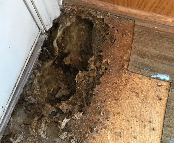 Water damage can be happening without you knowing. That is why the damage can be extensive. By the time you find out there is a leak, costly repairs are necessary. The picture above is an example of what can happen to flooring when water sits for a long period of time. You will notice ALL the layers of the flooring have been ruined. Moisture + floor boards = a bad recipe.